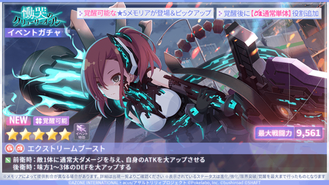 イベント「慟哭のクリューサーオール」での一場面を描いた★5メモリア「ジャスト・ザ・ブレイブ」「コール・ユア・ネーム」「ガーディアン・パワー」「エクストリームブースト」の4枚が初登場する、「慟哭のクリューサーオールイベントガチャ」を開催します。