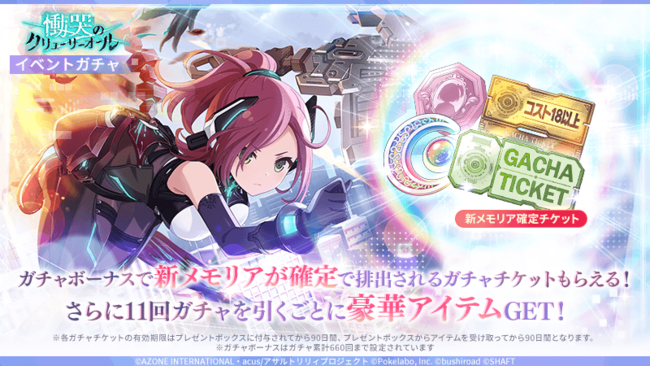 ガチャボーナスでは新メモリアが確定で排出されるガチャチケットがもらえます。