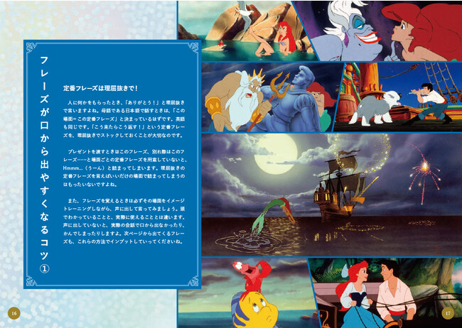 英語学習を進める際に意識しておきたいポイントやコツなども、たっぷりと掲載。英会話で「こう来たらこう返す!」という定番フレーズを、理屈抜きでストックしておくこと……など、「留学しなくても英語は絶対に話せる!」を掲げる著者からのアドバイスは役立つものばかりです。好きな作品のページから開いてもOK。ディズニーの世界に浸りながら、楽しんで英語に触れられる1冊です。