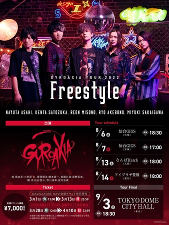 LIVEツアータイトルは、今回のメジャーデビューアルバムより、「GYROAXIA TOUR 2022 -Freestyle-」に決定。熱い夏になること間違いなしのLIVEツアー、是非チェックして欲しい。