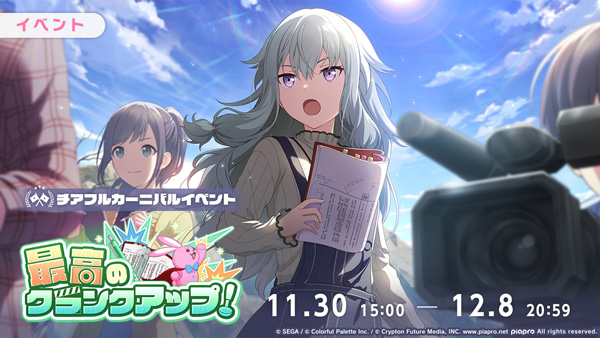 株式会社セガ(本社:東京都品川区、代表取締役社長COO:杉野行雄)と株式会社Colorful Palette(本社:東京都渋谷区、代表取締役社長:近藤裕一郎)は、iOS/Android向けリズム&アドベンチャー『プロジェクトセカイ カラフルステージ! feat. 初音ミク(以下、プロジェクトセカイ)』について、2023年11月30日(木)より、ゲーム内イベント「最高のクランクアップ!」、「華の都へご招待ガチャ」を開催いたします。