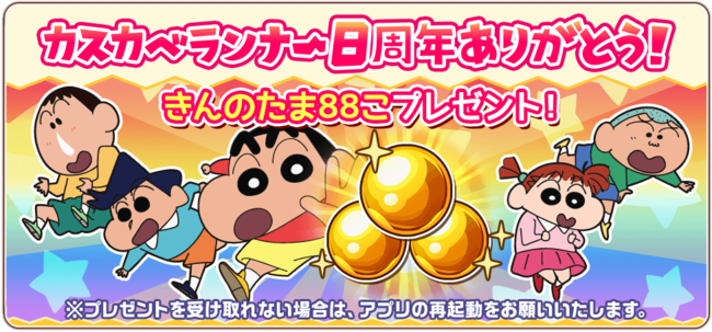 アプリリリース8周年を迎えた感謝を込めて、期間中にゲームへログインしていただいた皆様に「きんのたま×88こ」をプレゼント中です!