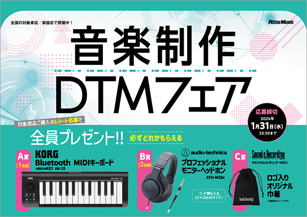 対象商品ご購入のレシート応募で全員プレゼント!「音楽制作DTMフェア」が全国の楽器店、書店にてスタート