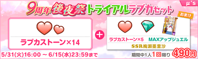 株式会社ブシロード(本社:東京都中野区、代表取締役社長:橋本義賢)は、KLab株式会社(本社:東京都港区、代表取締役社長:森田英克)と共同開発いたしましたスマートフォン向けアプリ『ラブライブ!スクールアイドルフェスティバル』(以下、スクフェス) においてスクフェス9周年後夜祭キャンペーン 第4弾の開催をお知らせいたします。是非貴社の媒体にてお取り扱い頂きますようお願い申し上げます。