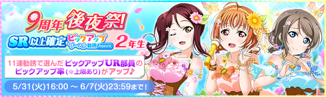 9周年後夜祭!SR以上確定ピックアップブースト勧誘〜Aqours〜2年生