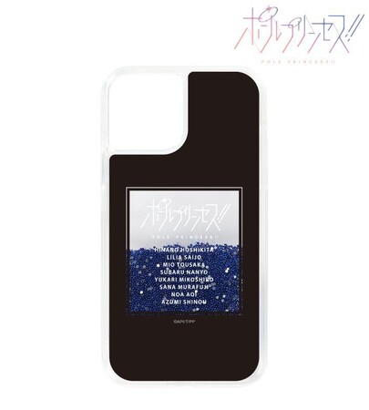 作品ロゴ、キャラクターの名前の英字をグリッターiPhoneケースに仕上げました。