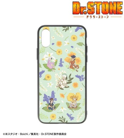 石神千空、あさぎりゲン、七海龍水、クロム、西園寺羽京のイラストをボタニカルデザインに落とし込んで繊細なタッチで新たに描き起こし、強化ガラスiPhoneケースに仕上げました。