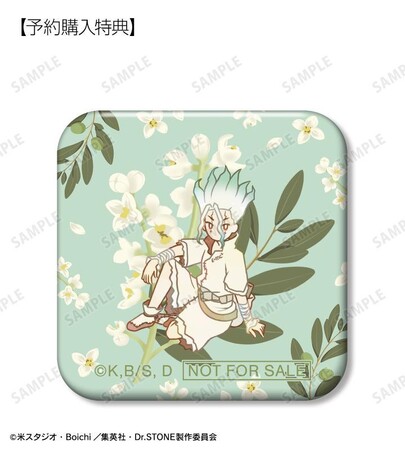 当商品を1BOX、または単品にて1BOX相当数ご注文ごとに、予約購入特典として「石神千空 Botania スクエア缶バッジ AMNIBUS限定特典」を付属いたします。