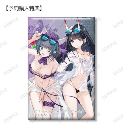当商品を1BOX、または単品にて1BOX相当数ご注文ごとに、予約購入特典として「描き起こしイラスト チェシャー&能代 水着ver. スクエア缶バッジAMNIBUS限定特典」を付属いたします。