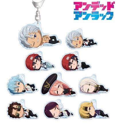 アンディ、出雲風子、シェン、ジーナ、ジュイス、ビリー、ムイ、リップがころんと寝ているちびキャラを新たに描き起こし、アクリルキーホルダーに仕上げました。