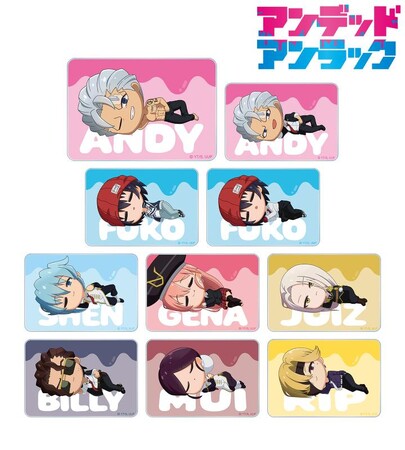 アンディ、出雲風子、シェン、ジーナ、ジュイス、ビリー、ムイ、リップがころんと寝ているちびキャラを新たに描き起こし、アクリルカードに仕上げました。