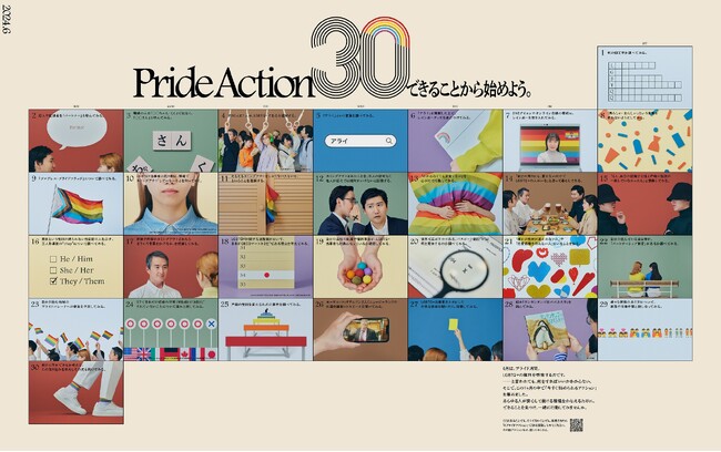 LGBTQ+当事者の方々への理解と支援を示し、自身で行動を起こすことを促す30個のアクションを新聞広告で提案、特設サイトを公開し、ソーシャルメディア等でも6月の30日間にわたって毎日情報発信を行いました。