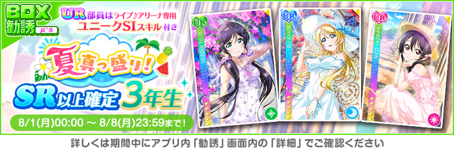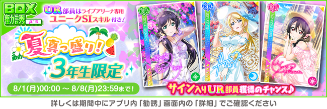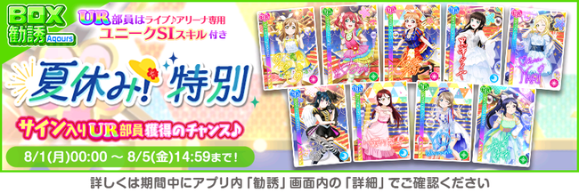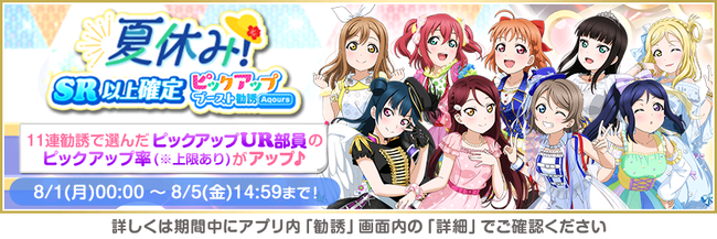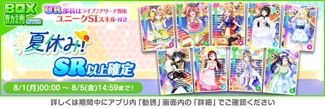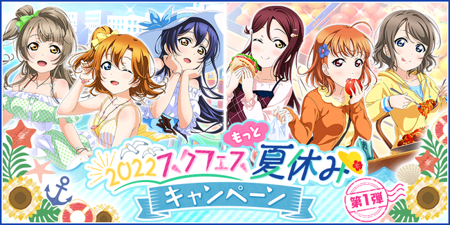 株式会社ブシロード(本社:東京都中野区、代表取締役社長:木谷高明)は、KLab株式会社(本社:東京都港区、代表取締役社長:森田英克)と共同開発いたしましたスマートフォン向けアプリ『ラブライブ!スクールアイドルフェスティバル』(以下、スクフェス) において2022スクフェスもっと夏休みキャンペーン第1弾の開催をお知らせいたします。