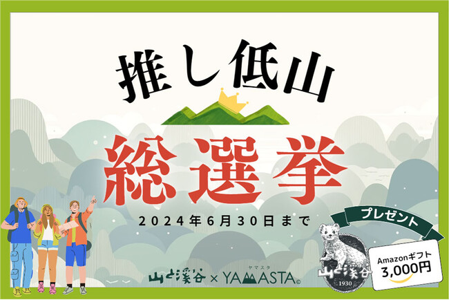 さらに、SNSで「推し低山 総選挙」をシェアした人の中から抽選で5名に、「Amazonギフト券 3,000円分」をプレゼント。推しの低山をSNSに投稿して、選挙を盛り上げよう。キャンペーンの詳細はヤマスタHPへ。