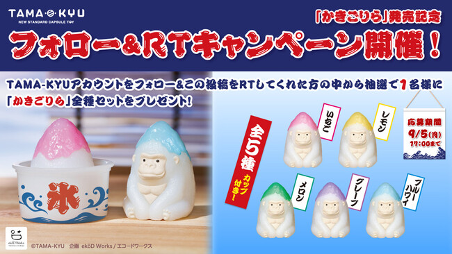 株式会社ブシロード(本社:東京都中野区、代表取締役社長:木谷高明)のグループ会社にあたる株式会社ブシロードクリエイティブ(本社:東京都中野区、代表取締役社長:成田耕祐)は、オリジナルカプセルトイブランド『TAMA-KYU(タマキュー)』から、「かきごりら」を全国のカプセルトイコーナーにて2022年8月29日(月)より順次販売いたします。