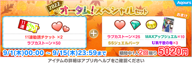 ブシモ「ラブライブ!スクールアイドルフェスティバル」2022スクフェスオータムキャンペーン第1弾開催のお知らせ