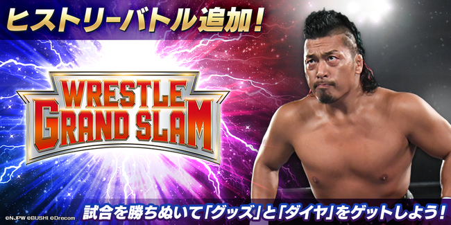 新日本プロレスの「WRESTLE GRAND SLAM」をテーマとしたヒストリーバトル「WRESTLE GRAND SLAM」がバトルアリーナ「ヒストリーバトル」に初登場。