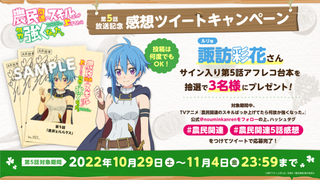 TVアニメ『農民関連のスキルばっか上げてたら何故か強くなった。』 第5話放送記念 感想ツイートキャンペーン