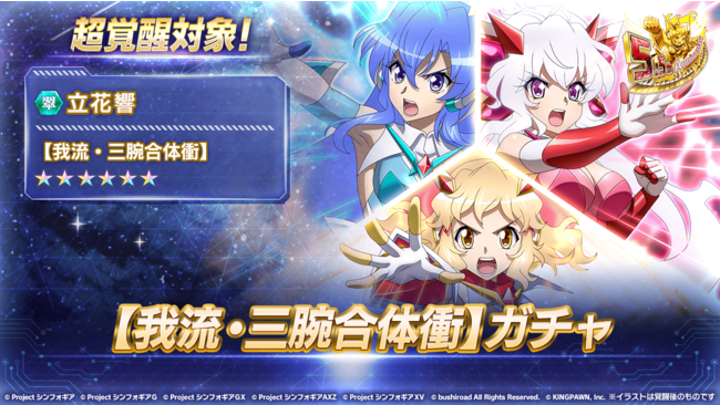 5.5周年を記念して、「バーニング・エクスドライブギア」を纏った立花響、風鳴翼、雪音クリスの連携技の新★6シンフォギアカード「立花響【我流・三腕合体衝】」が初登場する「立花響【我流・三腕合体衝】ガチャ」が開催中です。