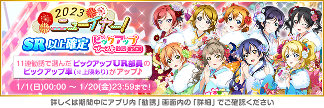 ブシモ「ラブライブ!スクールアイドルフェスティバル」2023スクフェスニューイヤーキャンペーン第1弾開催のお知らせ
