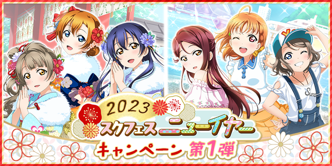株式会社ブシロード(本社:東京都中野区、代表取締役社長:木谷高明)は、KLab株式会社(本社:東京都港区、代表取締役社長:森田英克)と共同開発いたしましたスマートフォン向けアプリ『ラブライブ!スクールアイドルフェスティバル』(以下、スクフェス) において2023スクフェスニューイヤーキャンペーン第1弾の開催をお知らせいたします。