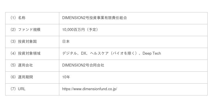 DIMENSION株式会社が組成したファンド「DIMENSION2号投資事業有限責任組合」への出資に関するお知らせ