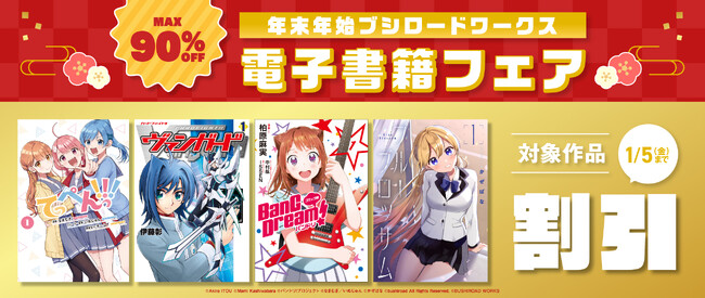 株式会社ブシロード(本社:東京都中野区、代表取締役社長:木谷高明)のグループ会社にあたる株式会社ブシロードワークス(本社:東京都中野区、代表取締役社長:新福恭平)は、明日12月30日(土)より『最大90%OFF!年末年始ブシロードワークス電子書籍フェア』を開催することをご案内致します。