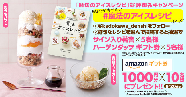 本書大好評につき、8月31日より同社のTwitterアカウント(@KADOKAWA_denshi)上で、豪華プレゼントが当たるキャンペーンが実施されます。本書内で紹介している中から2種類のレシピをピックアップしてツイートされ、読者はどちらかに投票することで応募できる、いわば総選挙のような形式がとられることになっています。
