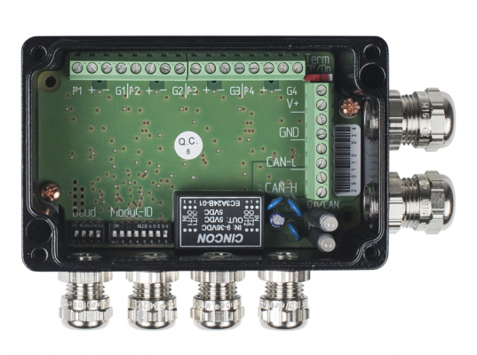 CANopenを備えた4チャンネル圧力データ収集モジュール、DCセンサー電源、24ビット解像度、メトリックケーブルグランド用に設計、ネジ留め式端子を介した接続