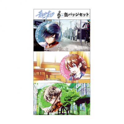 ▲『青のオーケストラ』缶バッジセット。原作コミックス1巻〜3巻の表紙を使用してデザインした、爽やかな缶バッジ3種セットです。缶バッジ3個入り。