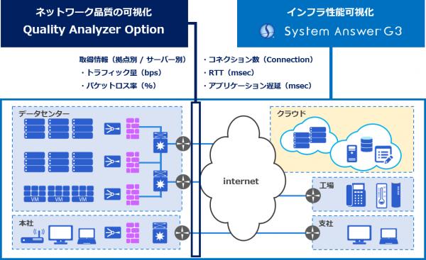 既存製品である性能監視ツール「System Answer G2」のお客様に対して、Log OptionおよびQuality Analyzer Optionを提供してまいりましたが、この度、システム情報監視ソフトウェア「System Answer G3」においても同様に、各オプションが加わることになりました。その結果、「System Answer G3」により情報監視を行う際にも、性能情報とログ情報の統合管理による可用性と安全性を兼ね備えたシステム運用と、性能情報から通信別の品質状況までの一元的な可視化を実現することができるようになります。