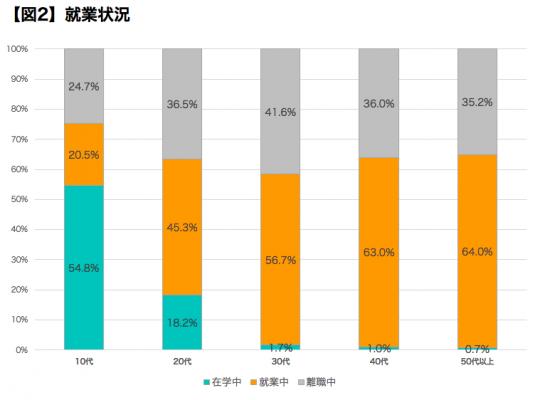 ■ 就業状況 - 「離職中」の割合は30代が最も高く