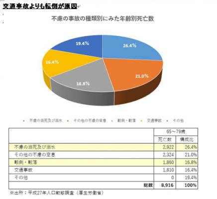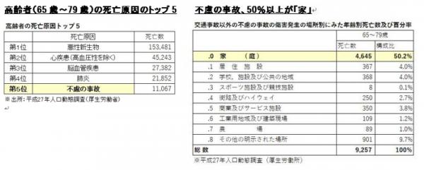 高齢者(65歳〜79歳)の死亡原因のトップ5 不慮の事故、50%以上が「家」