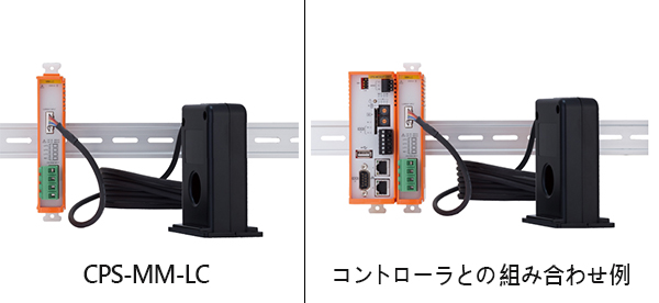 新製品 (型式: CPS-MM-LC) は、データ収集・Webモニタリング機能を内蔵したCPUモジュール (M2Mコントローラ 型式: CPS-MCS341-DS1-131 など) と組み合わせで使用します。ポンプ、コンプレッサ、空調ファン、金属加工機や搬送機器などの既存設備の三相モータ(誘導電動機)の電路に付属の専用ZCT(零相変流器)を取り付ければ、設備保全用の常時監視装置として、すぐにご活用いただけます。