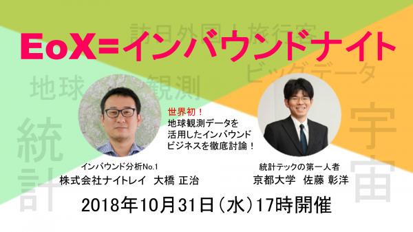 今回は、SNSを駆使したインバウンド×ロケーションデータ分析の先駆け株式会社ナイトレイの大橋正治さんと、世界メッシュにて、標高データ、人口アセス、観光データ、環境データ等あらゆるビッグデータと組み合わせた統計分析を行う京都大学の佐藤彰洋先生をお招きし、「インバウンド」の新しいビジネスソリューションについて討論を行います。