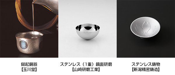 おもてなし体験会は、燕三条地場産業振興センターが平成29年度から進めている燕三条プライドプロジェクト・プロダクトグループ事業「素材・加工技術を活かした酒器」で生まれた金属酒器を使用します。