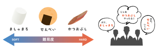 こうした盛り上がりを背景に、当社はプログラマーが楽しく技術を競える公の場として「PG Battle」を2018年11月17日(土)に開催しました。「PG Battle」は1チーム3人からなる団体戦で、「ましゅまろ」「せんべい」「かつおぶし」という3つのレベルを1人ずつ選びます。レベルごとに4つの課題が出題され、90分以内に4問(チーム合計12問)をプログラミングし、3人の合計点でチームの優劣を競い合うのです。チームの合計点が同点の場合は、回答時間の短かったチームが勝ちとなります。