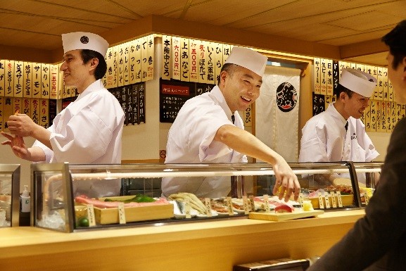 『寿司 魚がし日本一』は、東京と大阪を中心に駅近の立地にある寿司店です。新鮮な市場のネタを使った江戸前寿司をリーズナブルに提供し、「気軽にお寿司を食べていただきたい」という想いをお届けしています。現在、『立喰い寿司 魚がし日本一』を23店舗、テーブルがあり、旬の料理も楽しめる『本格江戸前寿司 魚がし日本一』を9店舗、2018年10月にオープンした新業態の板前研修店舗である「高田馬場 アカデミー」を運営しています。