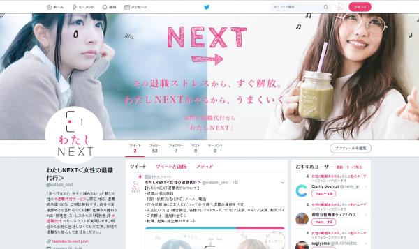退職や退職代行サービスの情報を発信するTwitterアカウントおよびFacebookページを開設しました。これまでなかった女性特化型の退職代行サービス【わたしNEXT<退職代行>】