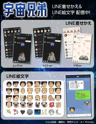 累計発行1,900万部突破「宇宙兄弟」のTVアニメ版がLINE絵文字で初登場!「ムッタ」「ヒビト」「アポ」のLINE着せかえ3作品も同時配信!