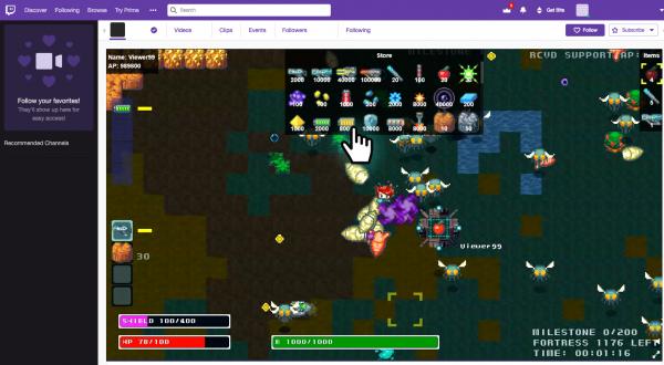 プレイヤーにアイテムや敵を送るためには、怒りポイント(AP)と呼ぶパーティクルが必要ですが、これはプレイヤーが敵を倒した際に生成され、視聴者は、各々のTwitchスクリーン上で集めることができます。