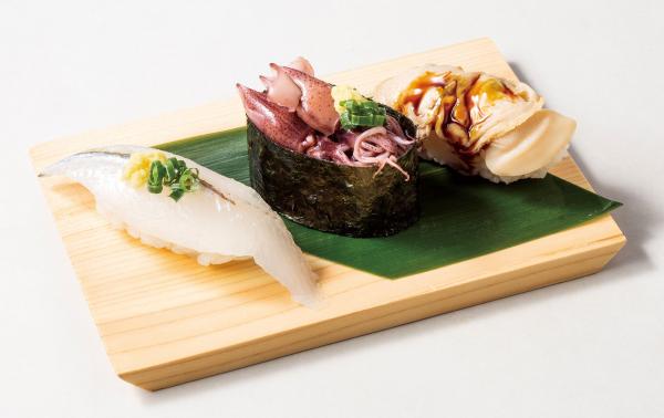 春こそ食べたい 贅沢握り! さより、ほたるいか、煮はまぐり 旬のネタをリーズナブルに 3貫セットで350円 『春の三貫王』 5月14日まで