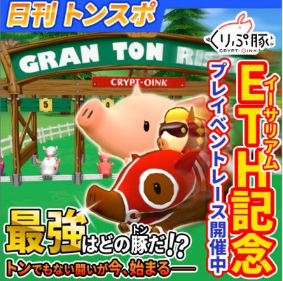 ・0.5ETH、くりぷトンのEXステータス『ETH記念 MINI(スピード+1,パワー+1,スタミナ+1,スキル発動率+2%)』 本戦レース1位入賞者(1名様)