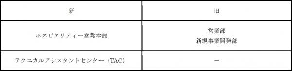新規事業開発部はビジネスモデル転換を推進するため、新たなビジネスモデルの基盤となる新製品及びサービスの企画開発、運用方法の調査、販売網の構築等を行う役割を担っておりましたが、新製品及びサービスを本格的に販売する段階に至ったことを受けて、営業部と統合し、ホスピタリティー営業本部を創設いたしました。
