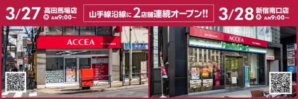 オンデマンド印刷業を展開する株式会社アクセア(本社:東京都千代田区、代表取締役社長:吉田忠司、以下アクセア)が、『アクセア高田馬場店』『アクセア新宿南口店』を2019年3月27日・28日に続けてオープンいたします。この2店舗でアクセアは国内外で合計52店舗となります。