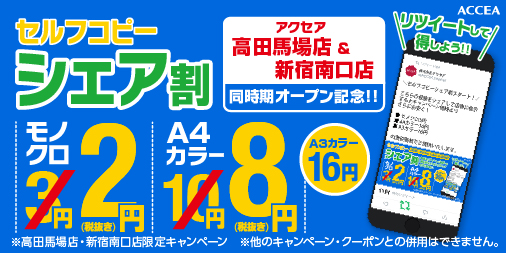 ★アクセア高田馬場店/新宿南口店限定!「シェア割」