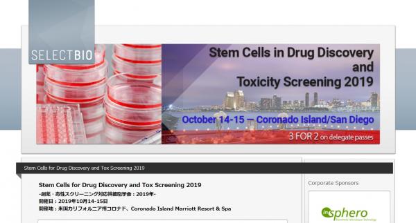 国際学会「創薬・毒性スクリーニング対応幹細胞学会 2019年」(Select Biosciences, Ltd.主催)の参加お申込み受付開始