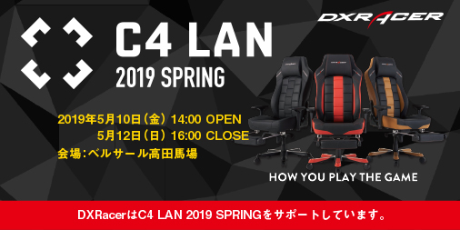 DXRacerは 5/10(金)〜5/12 (日)に開催される国内最大の持ち込みゲームLANパーティ『C4 LAN 2019 SPRING』への機材サポートを行います。