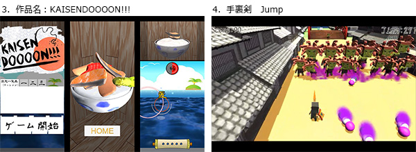 3.作品名:KAISENDOOOON!!! チーム名:バーチャルSUSHI↓ 開発者:田染颯野、水上嵩大