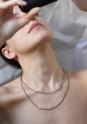 ブランド名にある「Ines Telles」とは、ジュエリーを製作しているデザイナーの名前です。イネスはポルトガル/リスボンにあるアトリエで、貝殻や珊瑚、木の実や花びらなどの自然素材からインスピレーションを得て、ジュエリーのパーツを一つ一つ丁寧に作り上げます。素材は高品質のシルバー925(※1)をベースとし、各パーツにいぶし銀加工(※2)や24金メッキ加工(※3)を施し、それらを組み合わせることによって唯一無二の独創的なデザインを生み出しています。その繊細で洗練されたデザインと伝統的な技術を持って作り上げられたクオリティーの高いジュエリーはサンフランシスコ近代美術館(SFMOMA)のミュージアムストアに認められ、取扱いをされています。